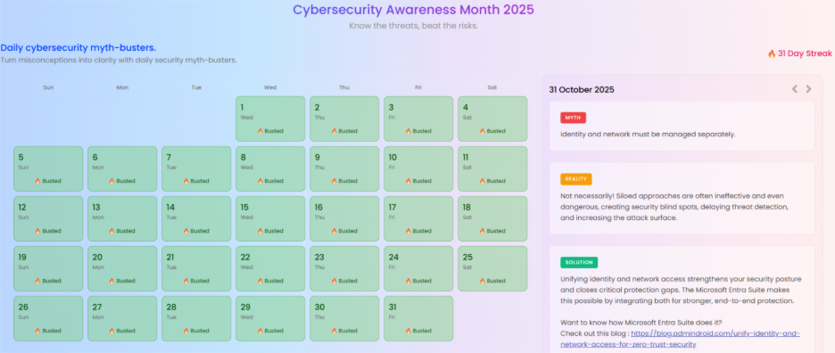 One of the myths we tackled: ‘Break glass accounts can’t fail’ – 30 more inside! Catch up on all 31 myth-busting moments on our Cybersecurity Awareness Month 2025 page.