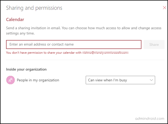 “You don’t have permission to share your calendar with user@contoso.com”