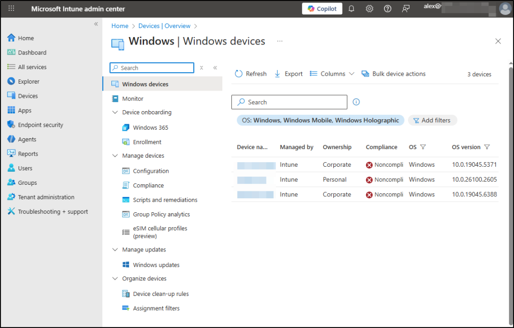 1️⃣ Device groups: Create device security groups based on regions, departments, or business units (for example, “London Devices” containing all devices in that location).