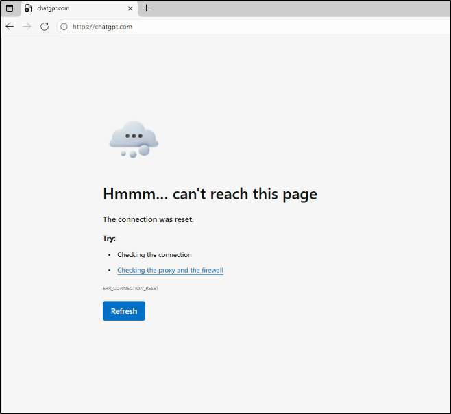 Before initiating any access request, All Generative AI platforms, including ChatGPT, remain blocked by the foundational web content filtering policy.