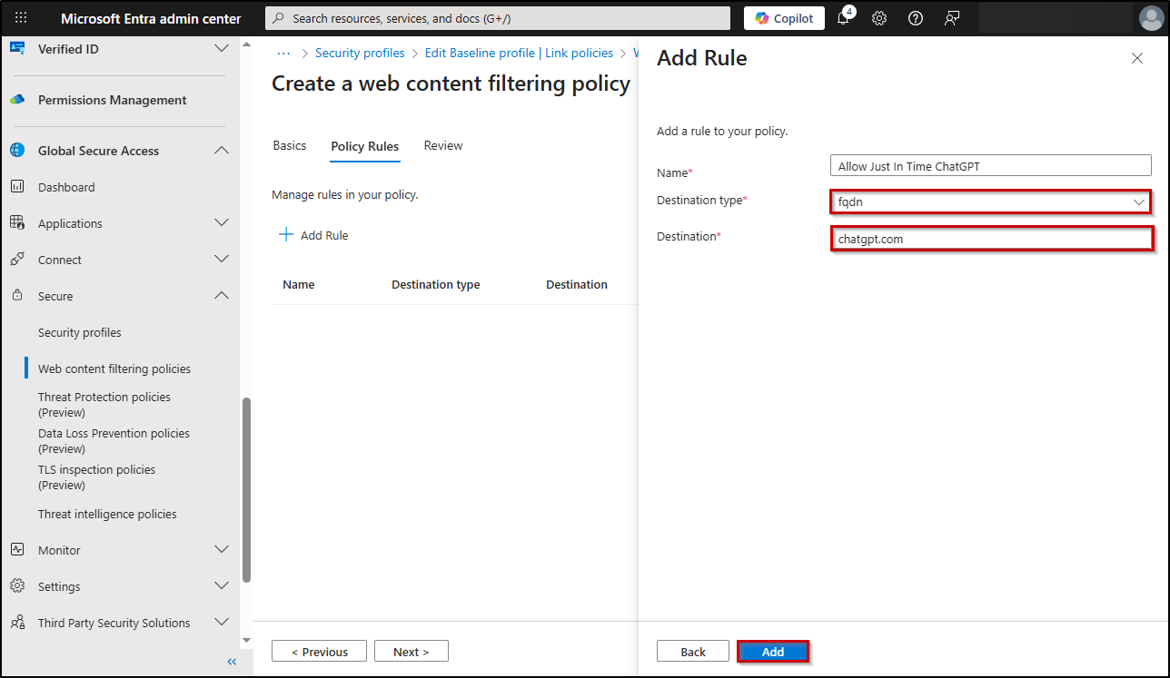 Create Web Content Filtering Policy to Allow ChatGPT Access:
