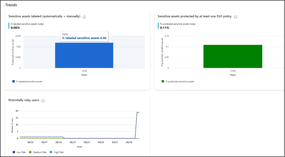 Trends help you see the recent history of sensitive data assets and user activities in your organization. They allow you to monitor your data security posture over time and track the status of protected assets.