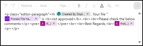 - Add Send an email (V2) to notify the user about the file rejection with approver comments.