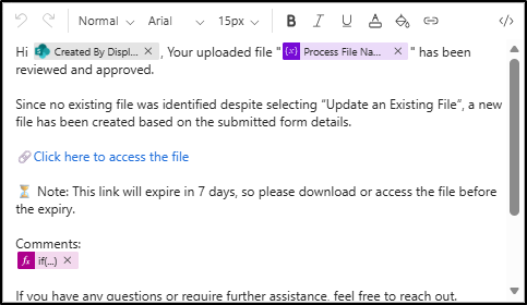 With this workflow in place, files uploaded to SharePoint are no longer shared externally by default. Every file is reviewed, approved, and shared only when explicitly authorized, ensuring consistent control without adding extra manual effort for admins.