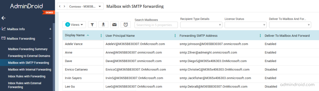 So, what is the easiest way to list all mailboxes with email forwarding enabled? With the help of the AdminDroid Office 365 reporting tool, you can complete the complex task within few mouse clicks.