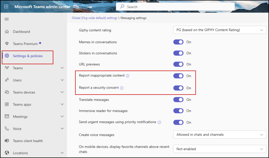 2. Under the Messaging settings, enable “Report inappropriate content” and “Report a security concern”.