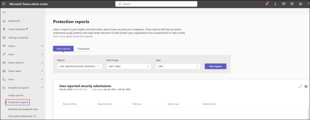 The new Protection reports in Teams admin center allow admins to review and export user-reported security submissions directly from one centralized location. This includes reports from user-reported: